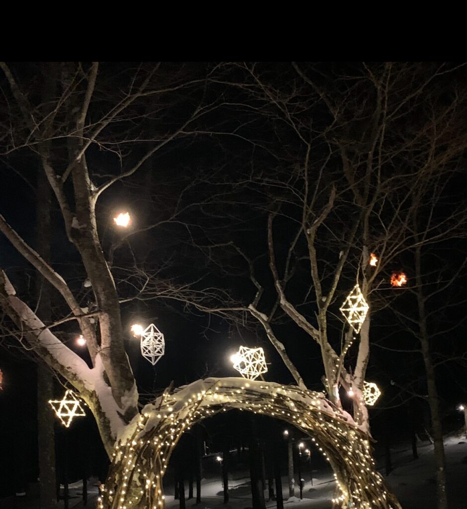 夜の森の駅のテラスには綺麗なイルミネーションがステキです。