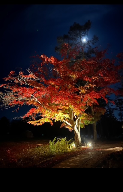 帰宅時には綺麗にライトアップされた楓がとても綺麗です。