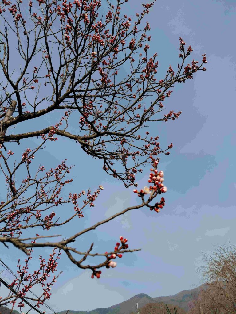 あんずの里も、淡いピンク色に染まり始めています。
