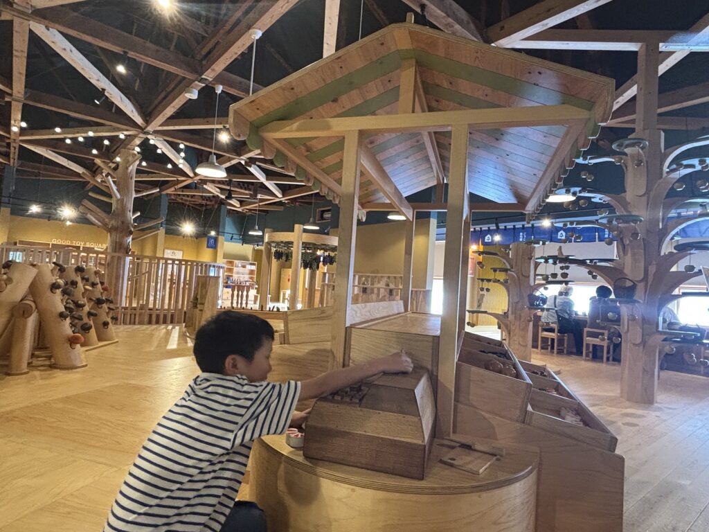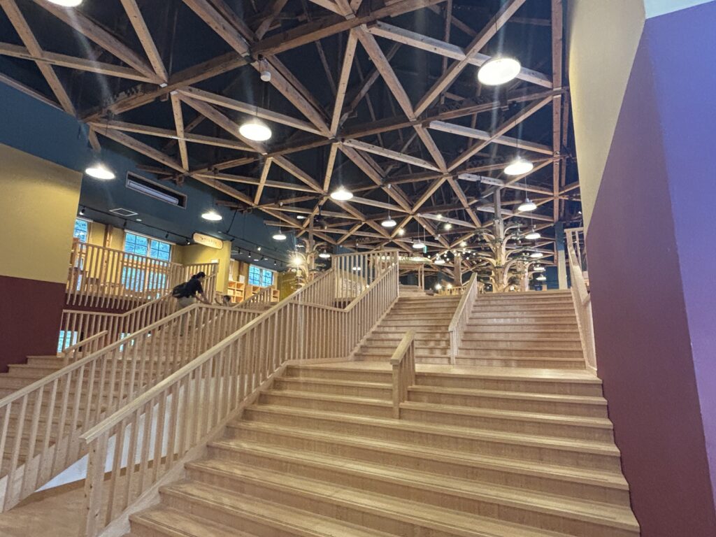 「おもちゃ美術館」という名前から、最初は子ども向けの施設かと思っていたのですが、実際に訪れてみると大人も感動する“木の建築”が広がっていて、建築好きの私にはたまらない空間でした。