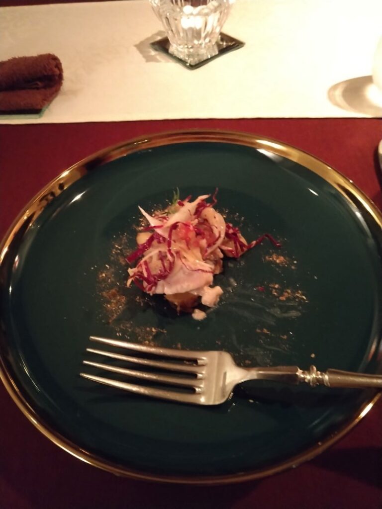 その夜は嫁の希望で、海鮮たらふく食べたので、フランス料理を食べに行きました。