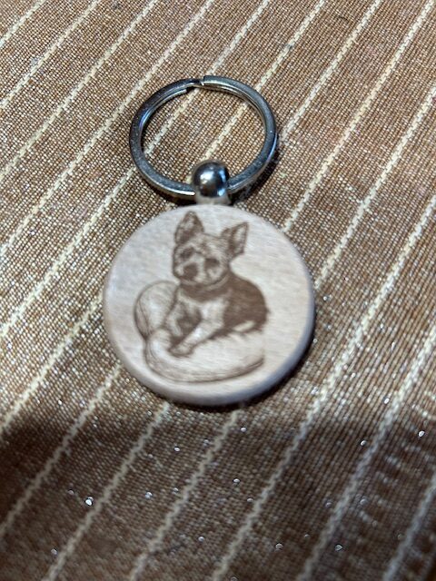 木のキーホルダーへ、レーザーでこんなにリアルに鮮明に転写できるなんて・・・