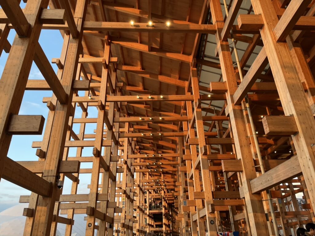大屋根リングは木造の建物で、伝統工法である「貫接合」を採用しています。