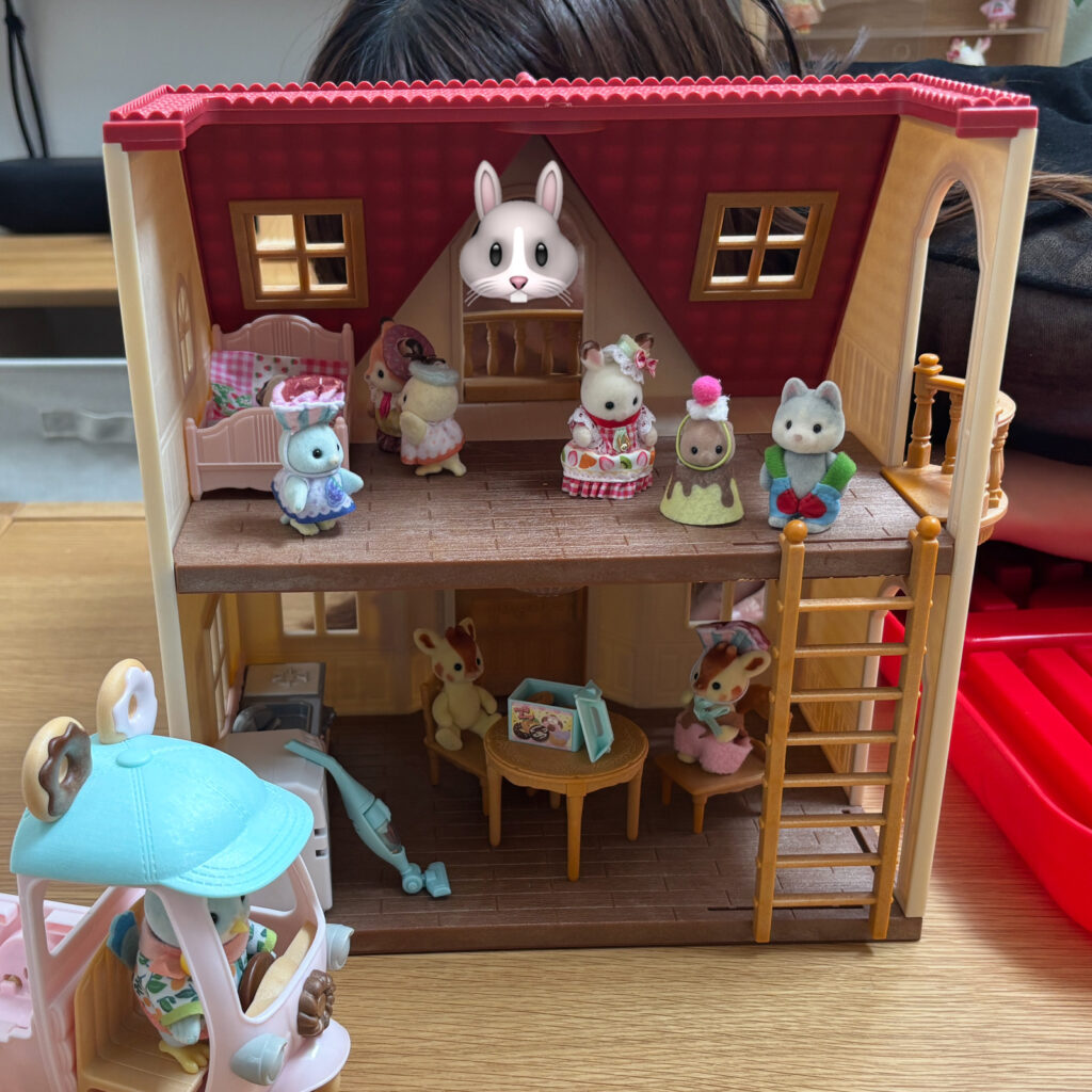 シルバニアファミリーのおうちとファミリーたちがリビングの真ん中に鎮座していました。