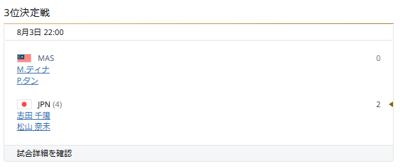 私が見たのはバドミントンの女子ダブルスでしたが、