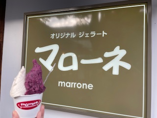 ジェラート屋さんで栗とナガノパープルのジェラートを食べ