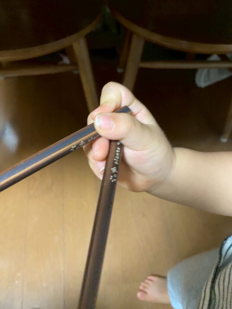 箸も見様見真似で握っています。