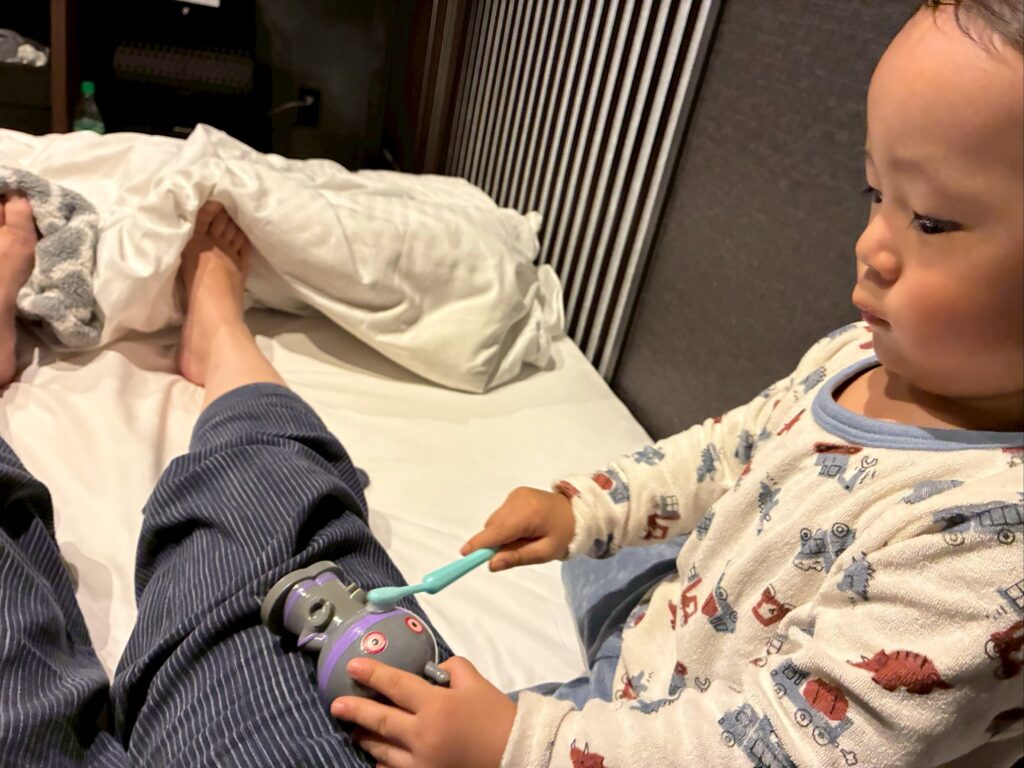 知らない場所で息子が寝てくれるか心配でしたが、杞憂でした。