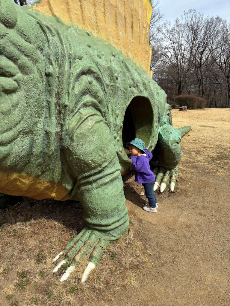 去年行った時には大きな恐竜にひたすらビビって引いていました・・・