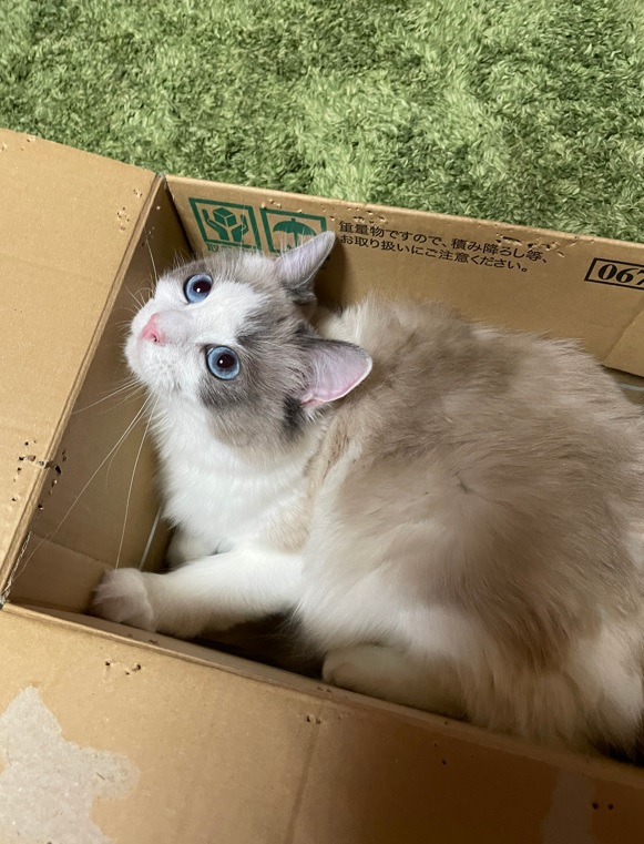 今回ご紹介させて頂くのが段ボールの中にいる猫ちゃん!