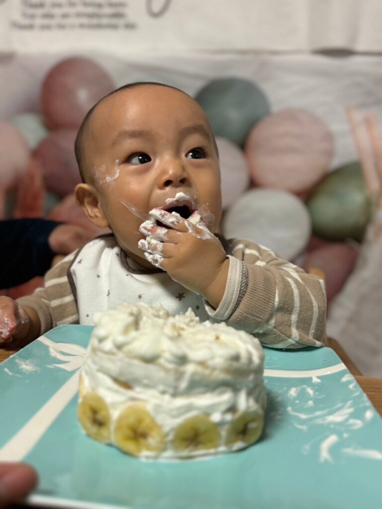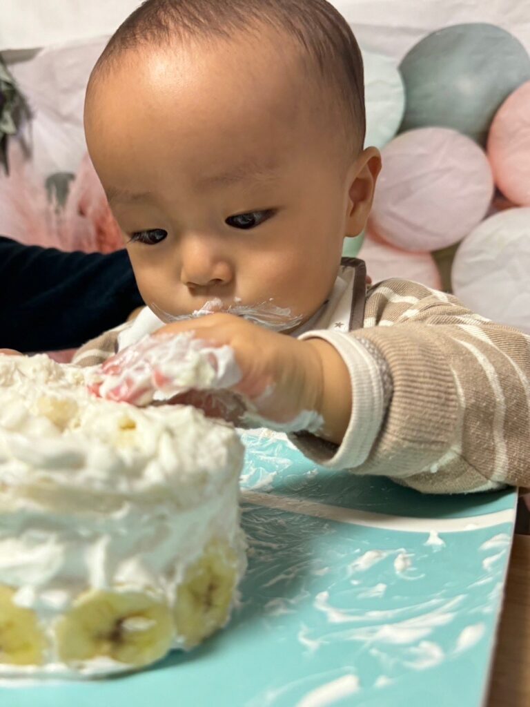 作ってくれたスマッシュケーキも顔中汚しながら食べてくれました!期待通り!