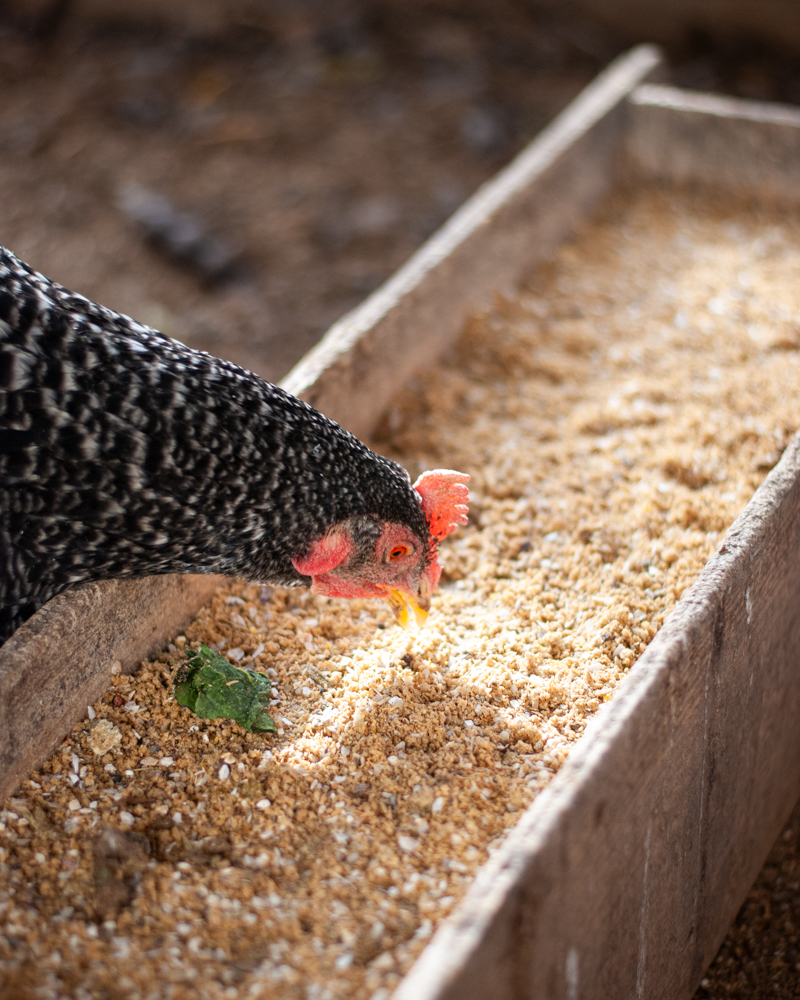 餌は、トウモロコシと米をベースにしたものと、畑で育てている葉物の外側の葉をあげています。