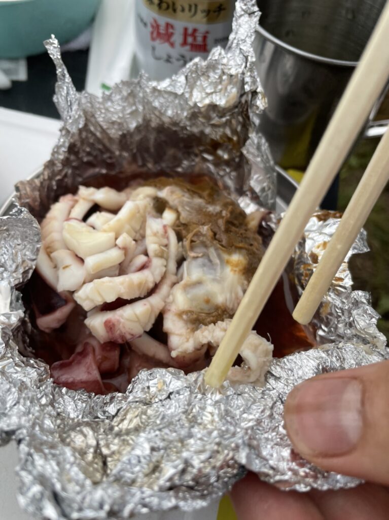 毎年恒例のキャンプ 飯綱東高原オートキャンプ場 ※主人力作のいかの肝焼き